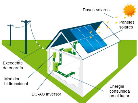 Si la cantidad de energía generada por el sistema fotovoltaico es mayor que la cantidad de energía consumida, el propietario puede inyectar los excedentes a la red y ser compensado por la compañía eléctrica al mismo valor de venta de energía.